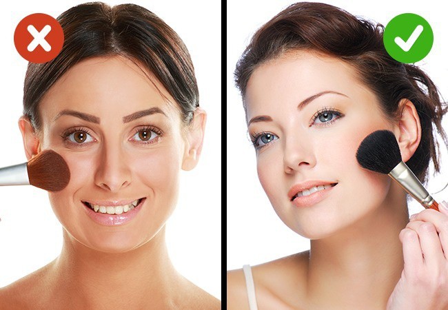Như tên gọi, đánh phấn má hồng là phấn đánh trên má. Tuy nhiên, để đạt được hiệu quả tốt nhất, bạn nên đánh vát theo xương gò má thay vì dậm thẳng lên vùng gò má.
