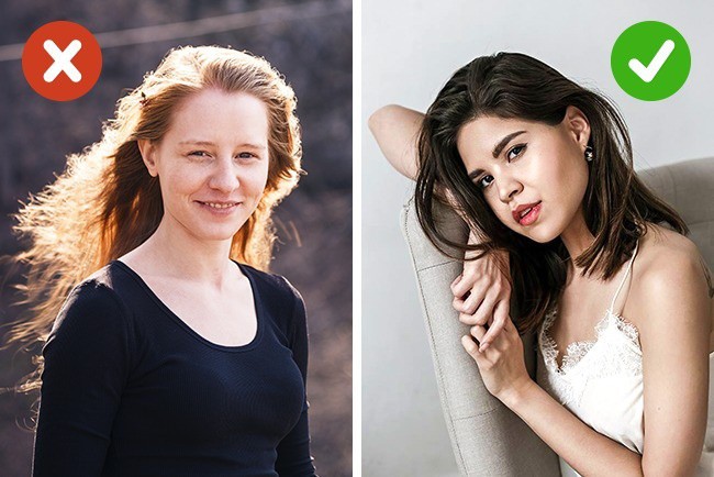 Mái tóc quá xẹp sẽ khiến khuyết điểm trên da bạn lộ ra rõ ràng hơn. Bạn có thể uốn xoăn nhẹ nhàng, cắt ngắn tóc hơn một xíu hoặc nhuộm lại màu khác để tạo cảm giác mới lạ. Nó sẽ khiến bạn trông trẻ hơn, làm sáng làn da của bạn nữa đấy.